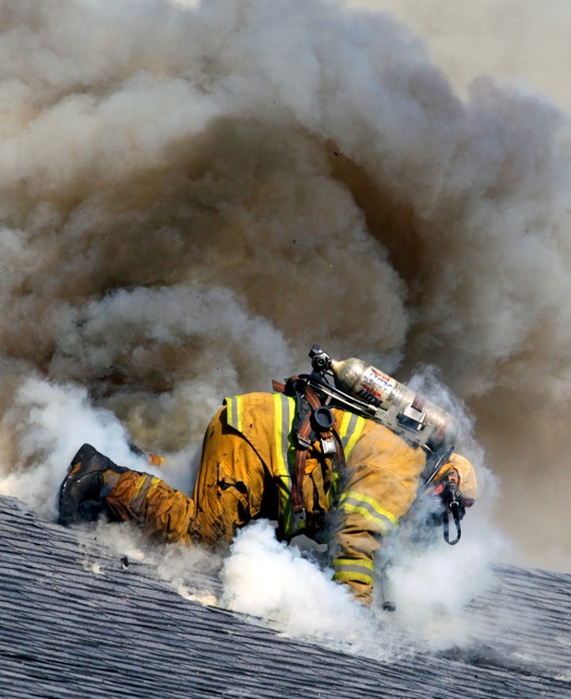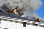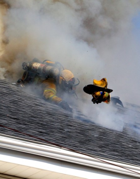 01/06/2012I don’t post just photos very often but these are some of the more incredible pictures that I have seen in a while. All the photos were taken by Tom Carmody. These are Pawtucket firefighters shortly after venting the roof and returning to the ladder, this happened on their way back. All the firefighters ended up with minor injuries.