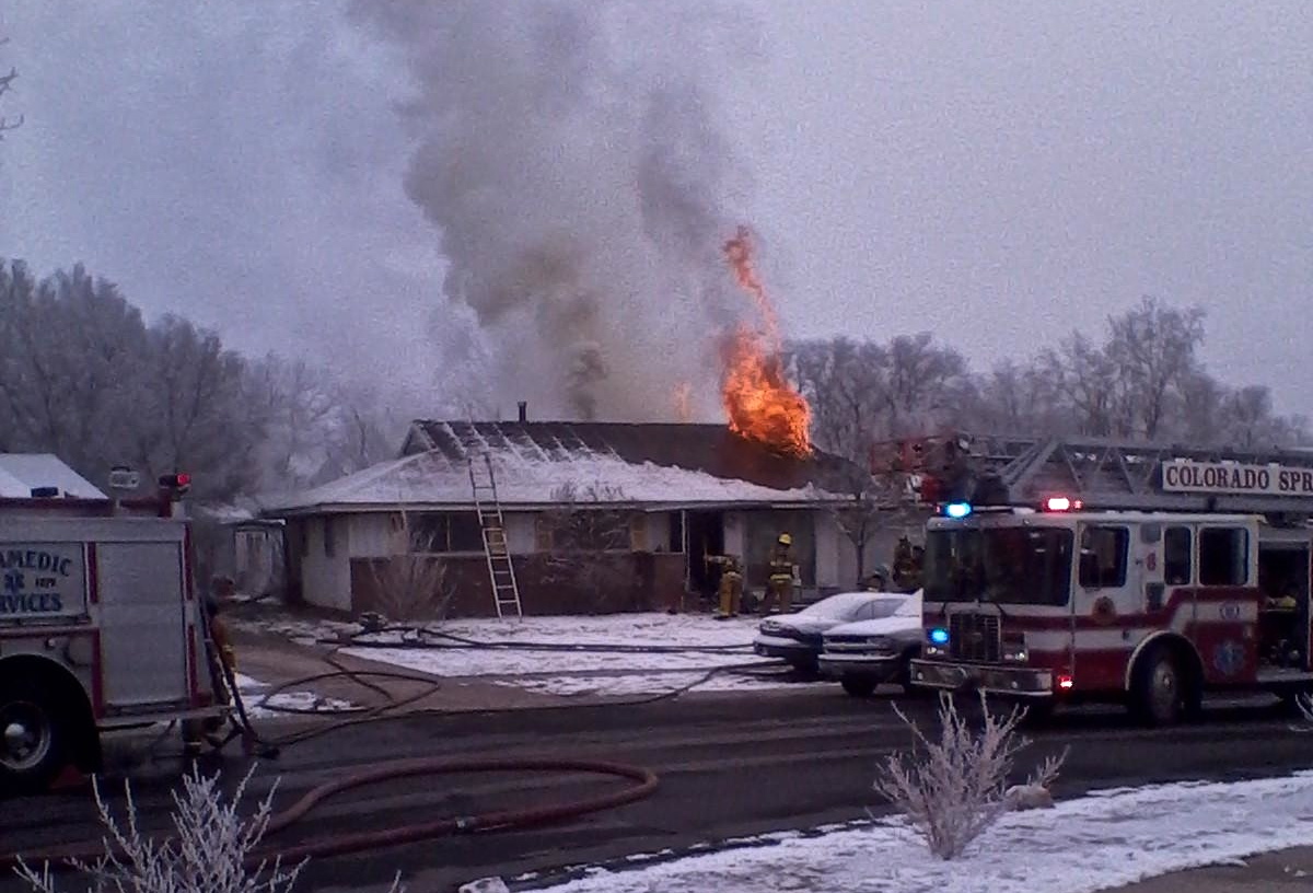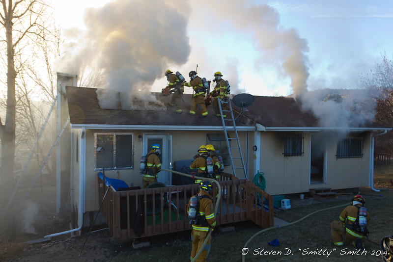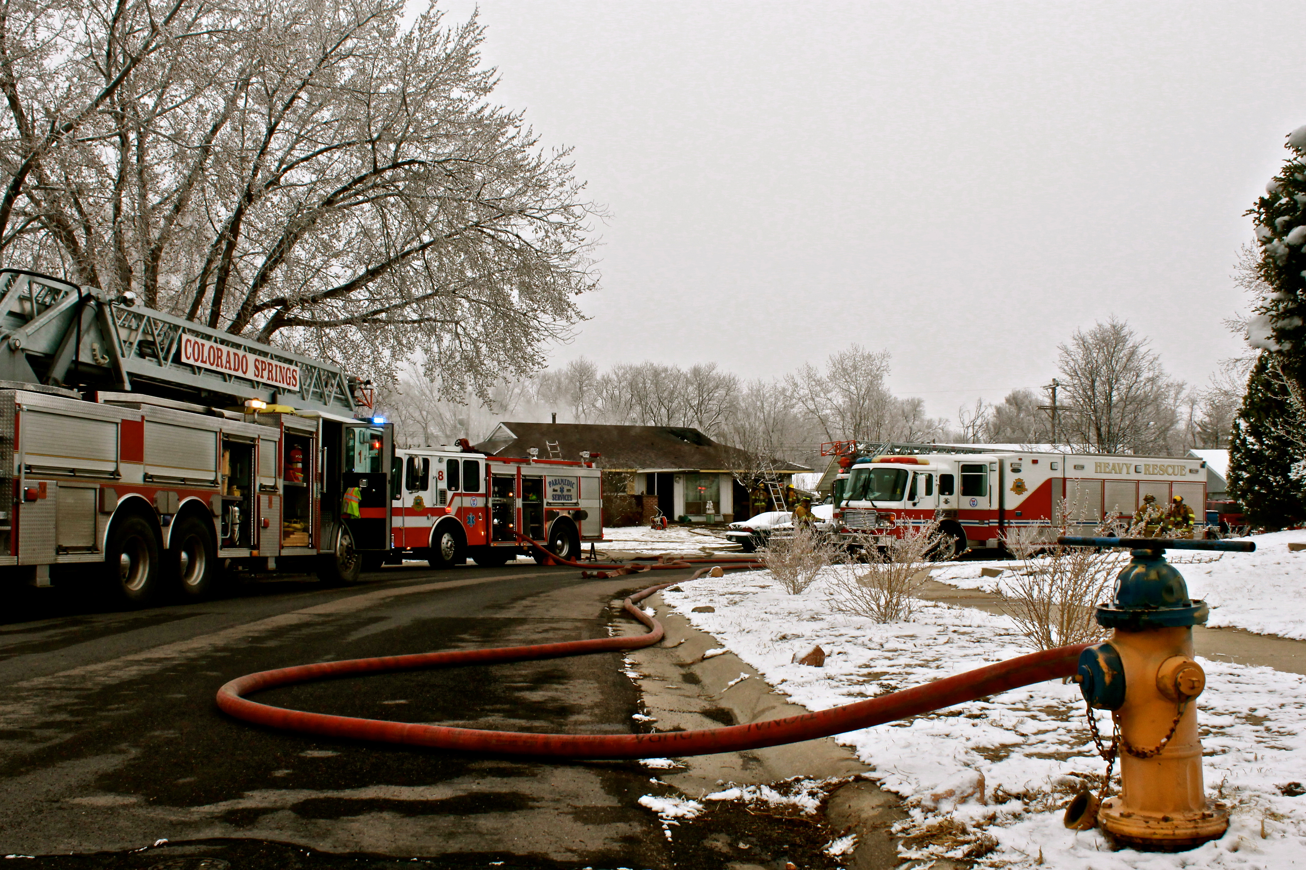 This series of pictures is from Colorado Springs Fire Department. CSFD sends 2 engines and 2 trucks to a single family home 1st alarm. This is a midsize department consisting of 21 Engine Co’s, 6 Truck Co’s and a Rescue Co for a population of about 500,000 people. They serve everything from urban areas, suburban neighborhoods to urban interfaces. Do not get lost in who CSFD is and focus on this residence and the fact that three essential fire ground operations are being executed in coordination by the first two companies.