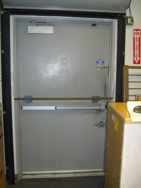 Sometimes in forcible entry what you see is what you get. Many doors we’ve posted have shown signs of secondary security features from the exterior that turned out to be exactly what we predicted when doing our door size up. Other times the backside of the door revealed that what we thought may be a difficult door is nothing more than a 20-30 second force with good conventional technique. The only definitive way to know what we’re up against is to get out in our district and walk the buildings. Now to the door in question. This door is found in a one story strip mall on the backside of a medical marijuana shop. We apologize in advance for the shadows in the picture. Neither shadow hides anything pertaining to our door size-up. Run down our size up points and see what you think.